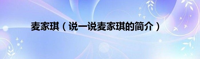 麦家琪(说一说麦家琪的简介)