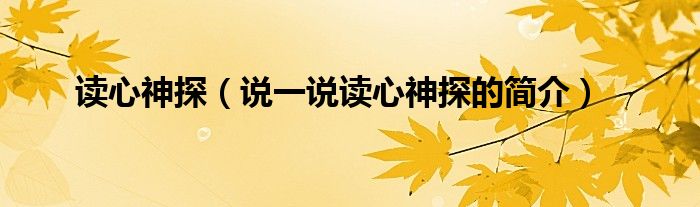 夏弥来为大家解答以下的问题,读心神探,说一说读心神探的简介,现在让我们一起来看看吧!