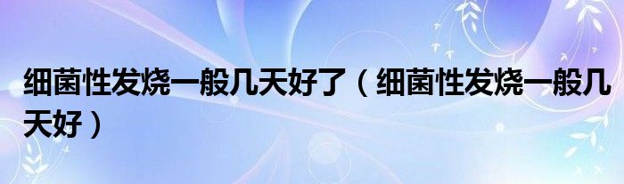 大家好,乐天来为大家解答以下的问题,细菌性发烧一般几天好了,细菌性发烧一般几天好很多人还不知道,现在让我们一起来看看吧!