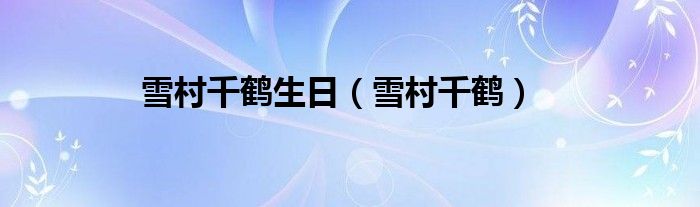 关于雪村千鹤生日,雪村千鹤这个很多人还不知道,今天菲菲来为大家解答以上的问题,现在让我们一起来看看吧!