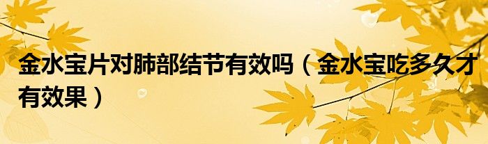大家好,乐天来为大家解答以下的问题,金水宝片对肺部结节有效吗,金水宝吃多久才有效果很多人还不知道,现在让我们一起来看看吧!