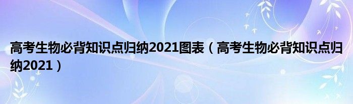 大家好,乐儿来为大家解答以下问题,高考生物必背知识点归纳2021图表,高考生物必背知识点归纳2021很多人还不知道,现在让我们一起来看看吧!