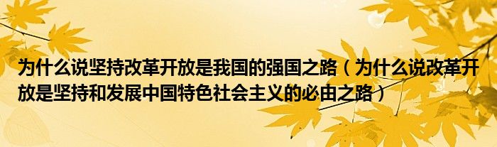 关于为什么说坚持改革开放是我国的强国之路,为什么说改革开放是坚持和发展中国特色社会主义的必由之路这个很多人还不知道,今天菲菲来为大家解答以上的问题,现在让我们一起来看看吧!