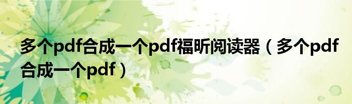 关于多个pdf合成一个pdf福昕阅读器,多个pdf合成一个pdf这个很多人还不知道,今天菲菲来为大家解答以上的问题,现在让我们一起来看看吧!
