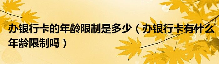 关于办银行卡的年龄限制是多少,办银行卡有什么年龄限制吗这个很多人还不知道,今天菲菲来为大家解答以上的问题,现在让我们一起来看看吧!