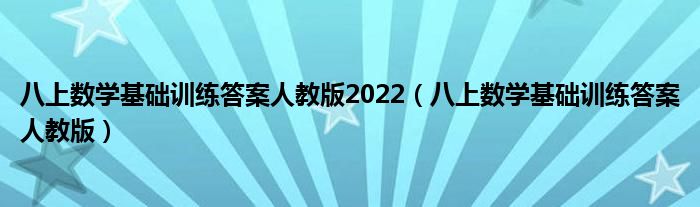 关于八上数学基础训练答案人教版2022,八上数学基础训练答案人教版这个很多人还不知道,今天菲菲来为大家解答以上的问题,现在让我们一起来看看吧!