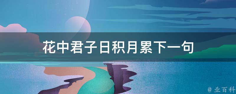 花中君子日积月累下一句是:柳下仁贤积少成多。这句话的意思是一个人在日积月累中,不断地学习、进步和完善自己,就像一朵盛开的花一样,不断地修炼自己,从而成为一个有品位、有修养、有人格的绅士,这样品行端正的男子也就会越来越多。