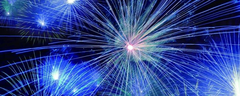 蓝色烟花少见是因为蓝色很难呈现。当金属盐类遇到高温火焰时,它们首先会发生一些化学变化,产生游离的“发光体”,这些发光体在高温下被激发,然后其中的电子再跃迁回到基态,这时会发出特定波长的光。钠的标志性黄光来自原子光谱,而其他很多“发光体”却是一些在火焰中形成的简单分子。烟花的蓝色就是来自CuCl这种“发光体”的光谱。要想形成这种蓝光效果,需要有铜化合物和富含氯的烟花火焰(氯可以来自高氯酸盐之类的物质)。同时,火焰温度也必须恰到好处,才能让分子“发光体”形成并且保持稳定。对于蓝色的“发光体”,这一要求尤其严格,过高的火焰温度很容易将其破坏。因此,蓝色是烟花中最难呈现的一种色彩。