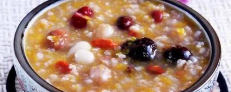 3、加入荞麦大米,煮沸后转小火,继续熬约40分钟即可。