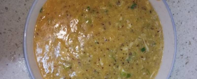 最佳答案用料:面粉一把、辣椒粉适量、鸡蛋一颗、胡椒粉少许、盐少许、葱一棵、姜一小块、青蒜苗一棵1、面粉加水,搅拌出稀面糊,葱和蒜苗切花,姜切粒。2、热锅冷油下葱花姜粒,再加入辣椒粉、胡椒粉、盐,炒出红油后加两小碗左右的清水。3、水开后倒入稀面糊,快速搅拌避免凝固和粘锅。4、开始冒泡则打入...