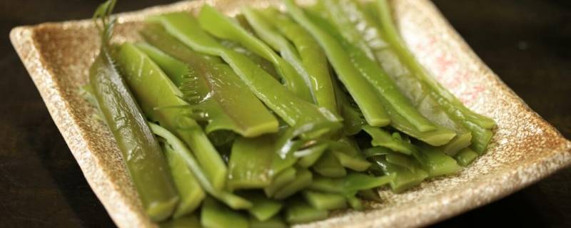 裙带菜属褐藻门,褐藻纲、海带目、翅藻科、裙带菜属。裙带菜属海藻类的植物,1年生,色黄褐,高1~2米,宽50~100毫米,叶缘呈羽状裂片,叶片较海带薄,外形像芭蕉叶扇,也像裙带,故取其名。裙带菜为温带性海藻,它能耐受较高的水温,我国自然生长的裙带菜主要分布在浙江省的舟山群岛与嵊泗岛。而现在青岛和大连地区也有裙带菜的分布。
