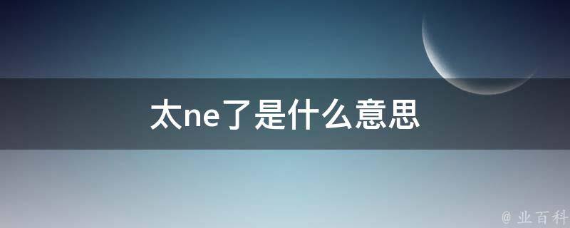 最佳答案就是“太厉害了”的意思,这个词通东北话“太猛了”“太神了”。但单个ne就是厉害的意思,程度偏向于凶狠。说一个人ne,就是比较厉害,比较凶狠。例:那个人长相很ne(凶狠的意思)。 东北话:东北话,也叫东北官话。主要分布于东北地区,包括黑龙江省和吉林省,除辽东半岛以外的辽宁省大部、内蒙古...