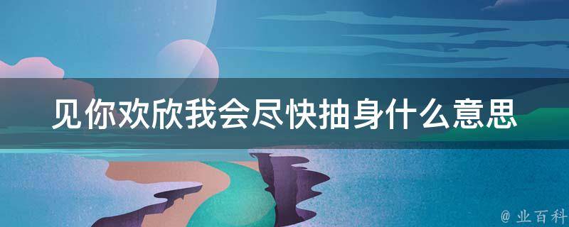 见你欢欣我会尽快抽身意思是如果你已经有了新欢,或者是已经治愈了,那么我会立刻抽身离开。这句话是歌曲《孤雏》中的歌词,《孤雏》是香港唱作歌手AGA演唱的歌曲,收录于同名EP《孤雏》中,并于2016年7月20日发行。