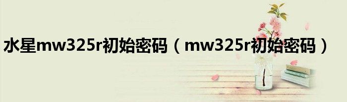 关于水星mw325r初始密码,mw325r初始密码这个很多人还不知道,今天菲菲来为大家解答以上的问题,现在让我们一起来看看吧!