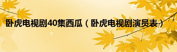 大家好,小联来为大家解答以上的问题。卧虎电视剧40集西瓜,卧虎电视剧演员表这个很多人还不知道,现在让我们一起来看看吧!