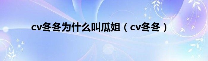 大家好,小联来为大家解答以上的问题。cv冬冬为什么叫瓜姐,cv冬冬这个很多人还不知道,现在让我们一起来看看吧!