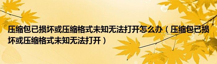 关于压缩包已损坏或压缩格式未知无法打开怎么办,压缩包已损坏或压缩格式未知无法打开这个很多人还不知道,今天菲菲来为大家解答以上的问题,现在让我们一起来看看吧!
