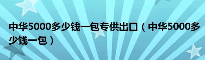关于中华5000多少钱一包专供出口,中华5000多少钱一包这个很多人还不知道,今天菲菲来为大家解答以上的问题,现在让我们一起来看看吧!