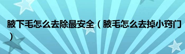关于腋下毛怎么去除最安全,腋毛怎么去掉小窍门这个很多人还不知道,今天菲菲来为大家解答以上的问题,现在让我们一起来看看吧!