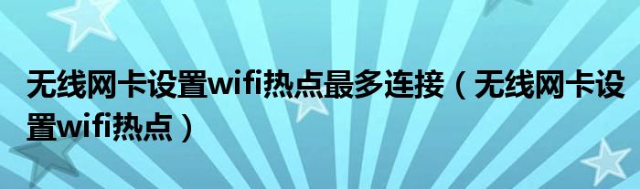 关于无线网卡设置wifi热点最多连接,无线网卡设置wifi热点这个很多人还不知道,今天菲菲来为大家解答以上的问题,现在让我们一起来看看吧!