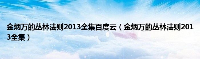 关于金炳万的丛林法则2013全集百度云,金炳万的丛林法则2013全集这个很多人还不知道,今天菲菲来为大家解答以上的问题,现在让我们一起来看看吧!