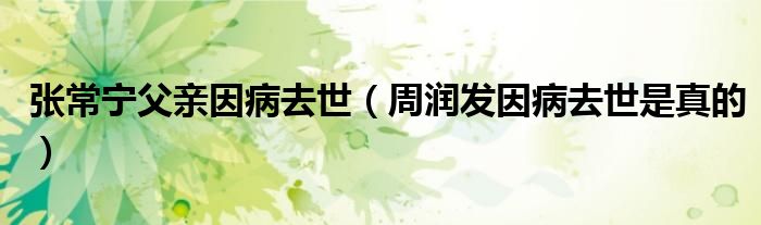 关于张常宁父亲因病去世,周润发因病去世是真的这个很多人还不知道,今天菲菲来为大家解答以上的问题,现在让我们一起来看看吧!