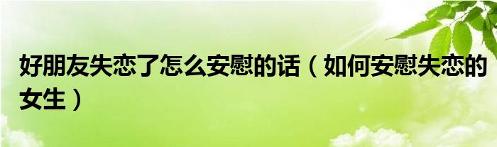 关于好朋友失恋了怎么安慰的话,如何安慰失恋的女生这个很多人还不知道,今天菲菲来为大家解答以上的问题,现在让我们一起来看看吧!