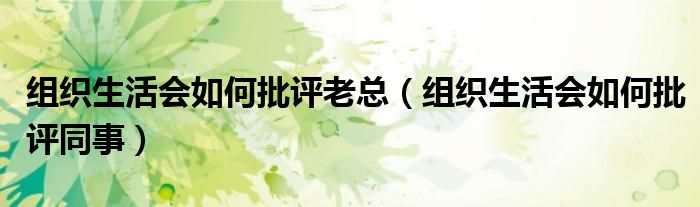 大家好,小华来为大家解答以上的问题。组织生活会如何批评老总,组织生活会如何批评同事这个很多人还不知道,现在让我们一起来看看吧!