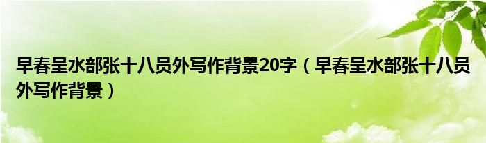 大家好,小联来为大家解答以上的问题。早春呈水部张十八员外写作背景20字,早春呈水部张十八员外写作背景这个很多人还不知道,现在让我们一起来看看吧!
