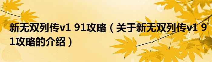 大家好,小夏来为大家解答以上的问题。新无双列传v1 91攻略,关于新无双列传v1 91攻略的介绍很多人还不知道,现在让我们一起来看看吧!