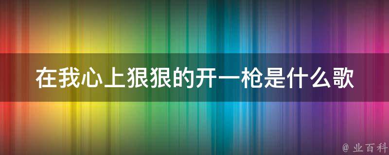 在我心上狠狠的开一枪是歌曲《开一枪》里的歌词,原句是:在我心上狠狠去开一枪,然后让我再狠狠绝望。《开一枪》由歌手雅泽演唱发行时间是2019年12月1日。这首歌用纯粹优美的音乐来叙述表达情感,整首歌曲充满了悲伤的气息。