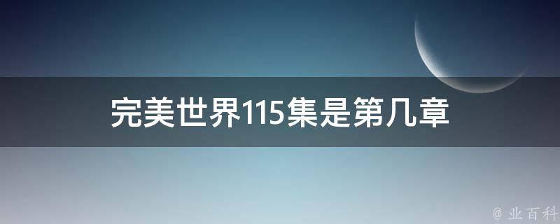 完美世界115集是第801章。因为根据《完美世界》剧情得知,115集的剧情与小说第801章的剧情一样。《完美世界》是一本连载于起点中文网的东方玄幻类小说,作者是辰东,已完结。该作品是辰东所著的第五部小说,又称《遮天前传》。