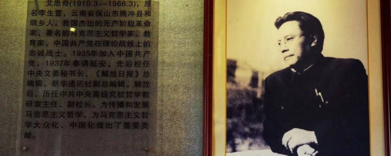 艾思奇出生于云南省腾冲县和顺乡水碓村,蒙古族,原名李生萱,中共党员、无产阶级革命家、马克思主义哲学家、教育家、中国科学院学部委员,生前是中共中央高级党校副校长。艾思奇于1930年考入日本福冈高等工业学校采矿系;1934年6月任职于《申报》报社;1935年10月加入中国共产党;1937年10月奉调至延安工作,先后任教于陕北公学和中国人民抗日军事政治大学;1938年任教于延安马列学院,并任哲学研究室主任;1939年任中央宣传部文化工作委员会秘书长;1945年8月任《解放日报》副总编辑;1946年任《解放日报》总编辑;1947年任职于华北大学,并任四部(研究部)副主任,哲学研究室主任;1948年10月任职于中央马克思列宁学院,历任哲学教研室教员、教研室主任,校党委常委;1955年6月当选为中国科学院学部委员;1956年赴波兰参加国际哲学讨论会;1960年任中共中央高级党校副校长;1966年3月22日因病逝世,享年56岁。