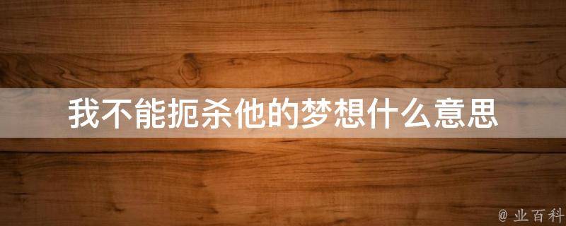 我不能扼杀他的梦想意思是我不能阻止或摧毁他追求梦想的愿望。扼杀在这里意味着阻止或使梦想无法实现。因此,整句话表达的是对他人追求梦想的尊重和支持。每个人都有自己的梦想,即使你不能直接帮助他们实现梦想,也要尊重他们的努力并支持他们。