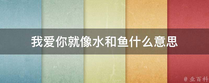 我爱你就像水和鱼的意思是非常喜欢你,就像鱼儿跟水那样谁也离不开谁,形容双方感情融洽、形影不离。我爱你,一般用于一人向爱慕的另一个人的感情表达,也可以用于亲人间,是一个人对另一个人的感情表达。也可以用于对宠物、物品等寄托了浓重感情的事物的表达。