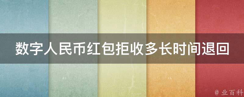 数字人民币红包拒收24小时就会退回,金额将会原路退回至发红包的付款钱包。如果遇到了不退回的状况,建议立马拨打客服的电话,或是给客服发消息进行解决。数字人民币是由中国人民银行发行的数字形式的法定货币,由指定运营机构参与运营并向公众兑换。