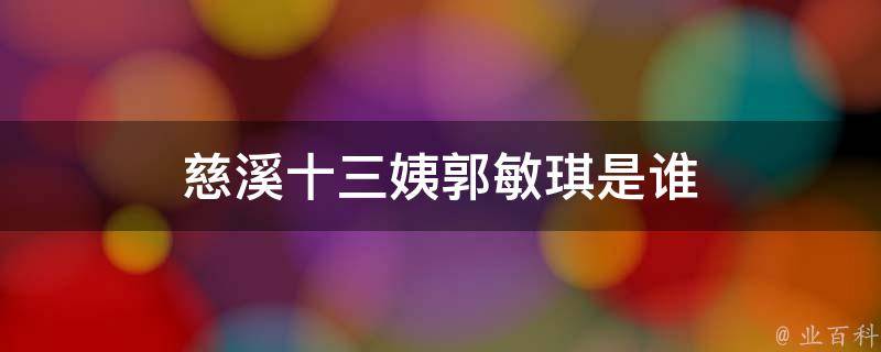 慈溪十三姨的真名叫郭敏琪,是一位活跃在抖音上的美食主播。慈溪十三姨是一位80后宝妈,对于做饭有着独特的热情,经常在社交平台上与大家分享自己做的各种美食。由于她做的菜肴非常诱人,逐渐受到了很多人的关注和喜爱。