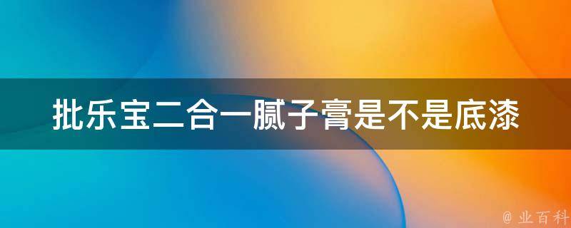 批乐宝二合一腻子膏不是底漆。腻子膏是一种高分子聚合物,可快速一次性的对腻子层表面进行修补、填充及找平。其主要成分为高分子聚合物、干粉料、无机填充料等,主要应用于室内墙面批刮找平。