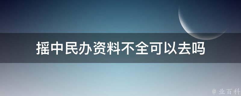 摇中民办资料不全不可以去。民办学校会对申请者的资料进行严格审核,如果资料不全,可能会影响录取结果或者导致无法正常入学。因此,建议尽快补齐所需的资料,以确保能够顺利地办理入学手续。