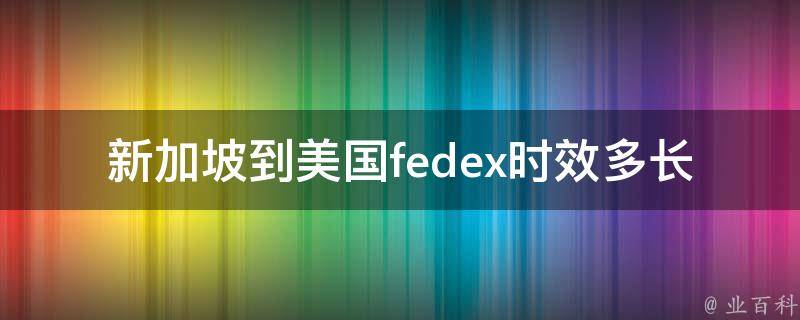 新加坡到美国经济服务(FEDEX-IE),时效为7-10天;快速服务(FEDEX-IP),时效为4-5天。联邦到美国西部的快递费率要优于美国东部,转运时效也快1-2天,所以如果是西部地址的快递可以选择,不赶时间的话也可以选择,毕竟联邦费率便宜。