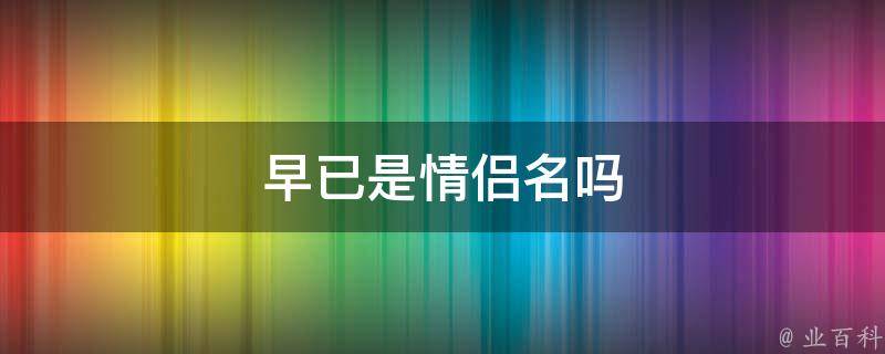 早已不是情侣名。情侣名是指两个人一起使用的名字,通常用于表达两个人之间的亲密关系和互相之间的爱意。情侣名通常由两个部分组成,一个是男方的名字,一个是女方的名字。常见的情侣名有醉爱-挚爱、相濡-以沫、吻星-亲月、双目顾-两生情等。