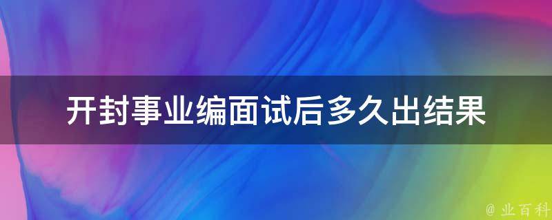 开封事业编面试后半个月至一个月出结果,事业编面试按考试总成绩从高分到低分等额确定体检拟入围人员,考试总成绩相同者取笔试总成绩高者拟入围,笔试总成绩和面试总成绩相同者一并入围,因资格复审及其他原因产生的岗位空额递补一次。
