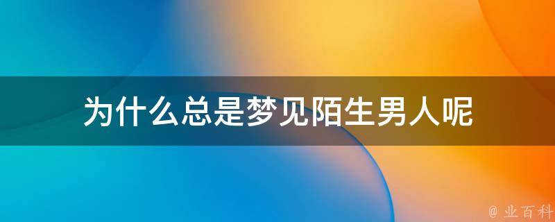 总是梦见陌生男人是因为无论是在工作或学业上都面临较大的压力,让你觉得无法喘气,甚至会有逃避的念头。建议你不要给自己太大的压力,人生有很多事情都是无关紧要的,你只是在某个时候放不开而已,熬过了就好了。