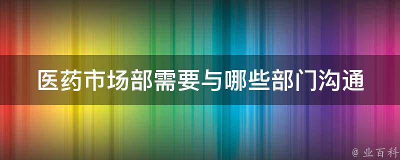 1、销售部门:医药市场部需要与销售部门密切合作,以确保产品的销售和推广工作顺利进行。市场部人员需要向销售团队提供市场信息和趋势分析,协助制定销售策略,并支持销售代表在市场上推广产品。