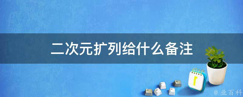 二次元扩列可以给的备注有:MySweety、小孩子、饲养员二狗子、撩汉小仙女、甜嗲嗲、打酱油的先生、没人要的凶婆娘、大逗比啊大潇宝、马铃先生、软肋、伢她妈、孩他娘、小乖、套路撩心、女神的二狗子、限量版、我的小可爱、心头肉、追念等。