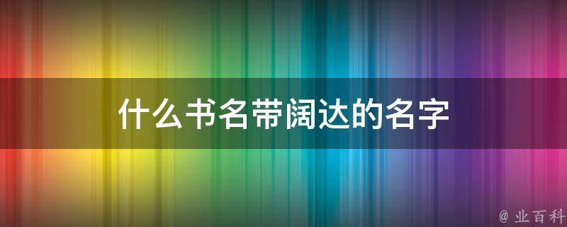 没有带阔达这两个字的书。书名是作者给读者的第一印象,一个好的书名不仅能给人留下深刻的印象,还能成为日后点击量增加的关键因素。书名三大特征:清晰揭示主题;简单并且独一无二;能引发读者的好奇心,激起读者的观看欲望。