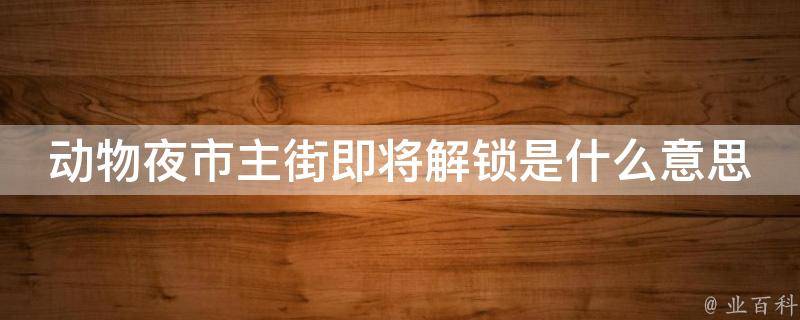 动物夜市主街即将解锁是指动物夜市游戏的1.5.0版本终于要上线了。动物夜市是一款经营类模拟游戏;即将是指终于、马上;主街在这里指游戏的1.5.0版本;解锁在这里指上线。《动物夜市》是长沙天创文化传播有限公司开发,湖南电子音像出版社有限责任公司出版的国产网络游戏。