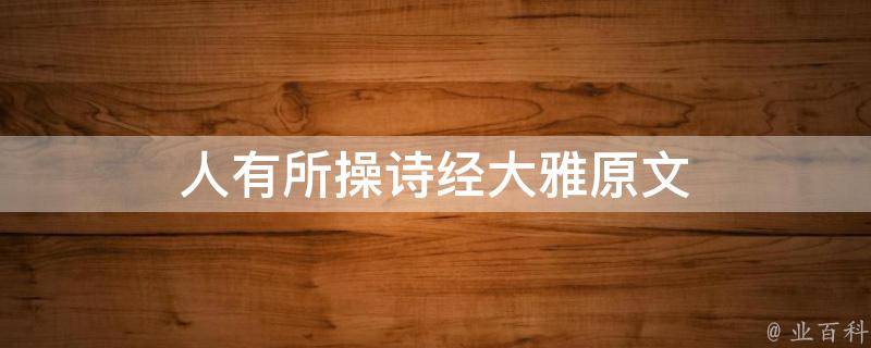 《诗经-大雅》人有所操的原文是:人有所操,我有其道。人有所不操,我有其教。人有所操的操字指的是人的操守或品德,含义是每个人都有自己的道德标准和行为准则,应该按照这些准则去行事,不违背自己的良心和道德。