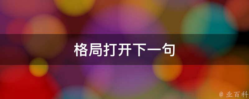 2、格局打开,视野无限。