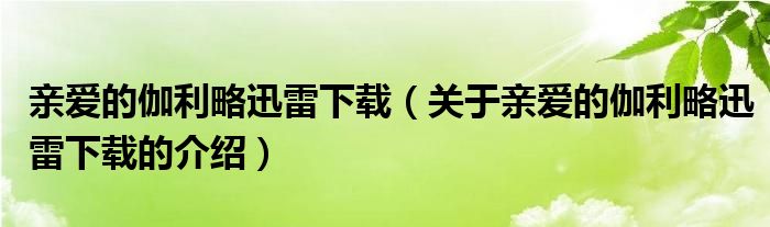 大家好,小夏来为大家解答以上的问题。亲爱的伽利略迅雷下载,关于亲爱的伽利略迅雷下载的介绍很多人还不知道,现在让我们一起来看看吧!